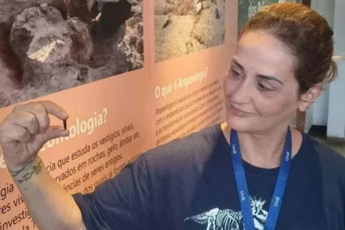 Formada em biologia, Flávia trabalha no Museu de Geociências há nove anos. A paixão pela paleontologia veio da vontade de entender não só os seres vivos do presente, mas também os processos evolutivos que moldaram a vida na Terra. “Quando comecei a estudar paleontologia, minha cabeça abriu”, conta.