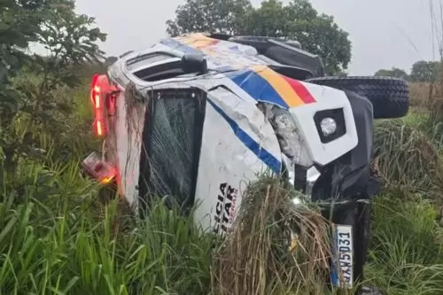 No local, a viatura foi encontrada capotada às margens da rodovia. Os dois militares que ocupavam o veículo já estavam fora, após receberem auxílio inicial de um usuário da via que passava pelo trecho no momento do acidente.