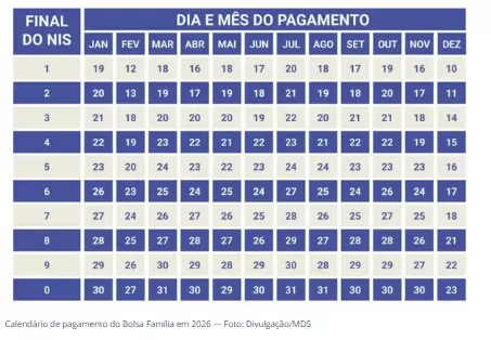 De acordo com o Ministério do Desenvolvimento e Assistência Social, Família e Combate à Fome (MDS), o pagamento começa em 19 de janeiro de 2026.