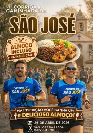 A 1ª Corrida de São José já tem data marcada: o evento será realizado no dia 26 de abril de 2026, com concentração às 6h30 e largada às 8h, na Praça São José, em frente à Igreja Matriz, em Curvelo.