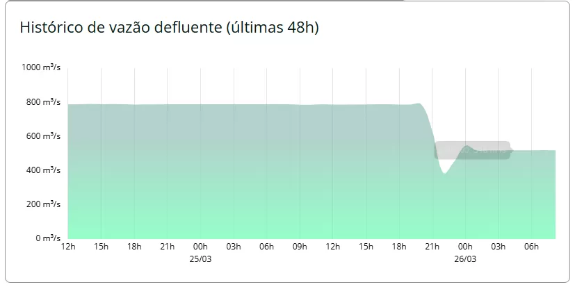 Vale destacar que os dados da usina podem variar ao longo do dia, conforme a operação e o volume de água recebido e liberado. Por isso, a recomendação é sempre considerar médias diárias para uma análise mais precisa da situação.