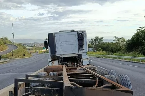 Com o impacto, o tanque se desprendeu e caiu em um barranco, enquanto parte do veículo permaneceu na pista, causando a interdição total da via.