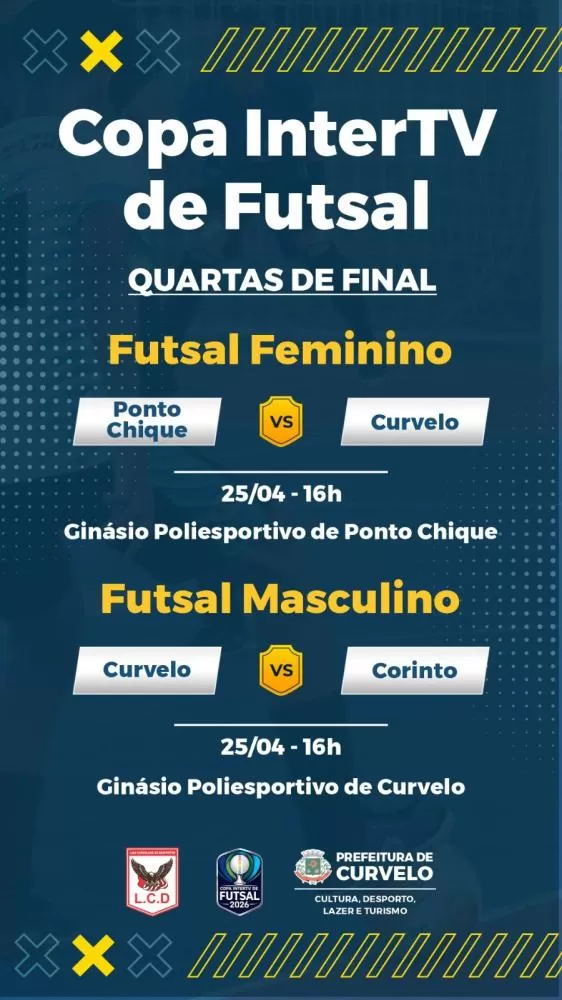 A emoção do futsal regional ganha intensidade com a chegada das quartas de final da Copa InterTV de Futsal, reunindo equipes de destaque em disputas que prometem alto nível técnico e competitividade.
